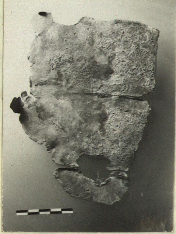 | Description: | Originally one piece, folded in three; the small lower fold now broken away. | |