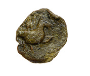 Obverse: in relief on one side, an eagle; over its back the letter Ω (?).