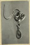 Description:   A double-volute top with flat pear-shaped drop, attached to a heavy wire which forms a single loop.