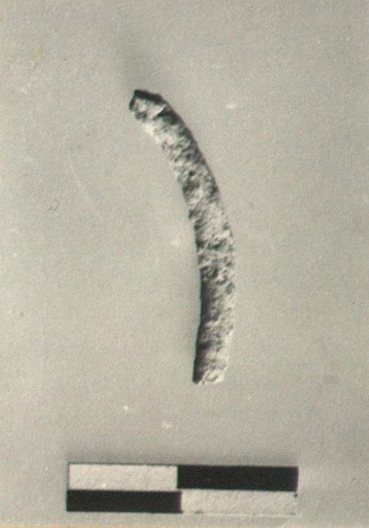 | Description: | Broken at both ends. Preserves simple curved rod, which originally thought to be a fragment from a silver pin. | |