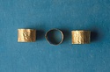 | Description: | Intact broad finger ring. Bent flat when found, but easily opened. Simple circle; sides not profiled. Repousse. Top and bottom, row of dots. Around side, chain of four receding lozenges (straight line, dots, straight line) the angles above and below them filled with receding triangles, the innermost of dots. Slope and scheme virtually identical with J 145. Early Geometric. 1.8gr | |