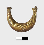 | Description: | Preserved is earring loop. Terracotta base, gold plated with bronze pins at each end. Loop decorated in shrimp fashion with incised lines. | |
