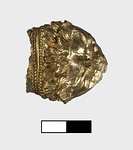 | Description: | Lion 's head. Broken away at neck. Head squashed when found. Ornament is lion 's head with fine gold braid at neck. Probably end of bracelet. | |