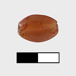 Amygdaloid shape with six faceted sides, rounded edges. Hole drilled lengthwise but piercing do not align at the center of the bead.