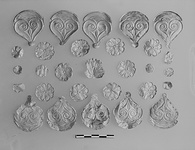 | Description: | Plain thin as a paper, disk. Somewhat bent, but unbroken. A single hole for attachment. No decoration. | |