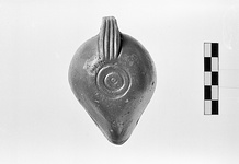 On discus, twisted rosette with groove around central filling hole.