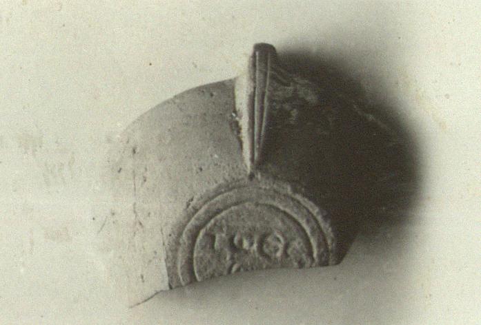 | Description: | Fragment from back part. Panelled rim with raised rosette and impressed ovolos. Pierced handle, double-grooved above and below. On the reverse double concentric grooves enclosing the signature. Type XXVII of Corinth collection. <graphic> | |