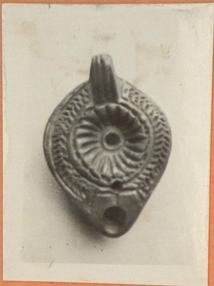 On bottom, circular groove enclosing palm branch; four stamped circles outside.