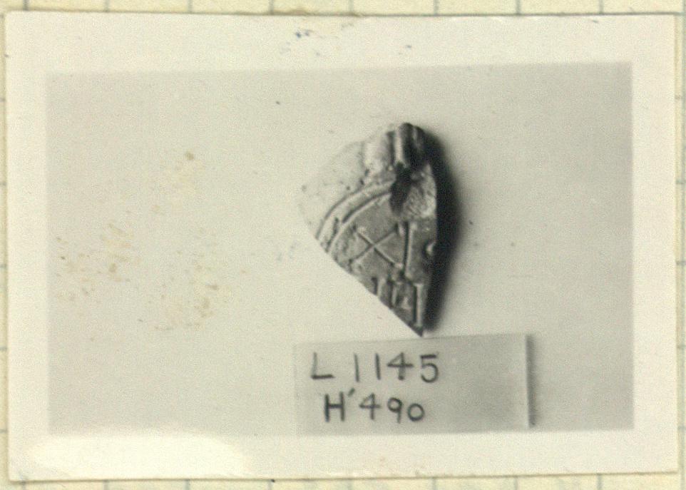 | Description: | A bit of the signed base is preserved. Traces of the grooved handle outside the double grooved circle enclosing the signature. Buff slip (?). Light reddish-buff clay. Type XXVIII (?) of Corinth collection. <graphic> | |