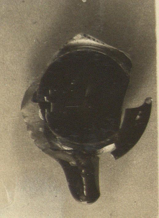 | Description: | Mended from three pieces; most of the wall missing, and none of the inner edge of the rim preserved. The bottom rises to a central point, inside. Neat ring foot; a reserved line at its junction with the body; the resting surface reserved, and reserved concentric circles on the space inside. Otherwise glazed all over, save for the under side of the rim. Best lustrous glaze. Type 21 variant of Agora collection. | |