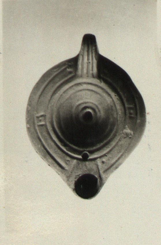 | Description: | Grooved panelled rim; plain discus with rings. Solid handle, unpierced. On the bottom, two concentric circles. Reddish wash. Type ΧΧVIII of Corinth collection. | |