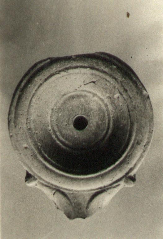 | Description: | The nozzle broken off. Shallow body; simulated ring foot; large concave discus, ornamented with raised rings. Volutes at the base of the nozzle. Light brown clay, once covered with thin black glaze, now nearly all worn off. Type XXIII of Corinth collection. | |