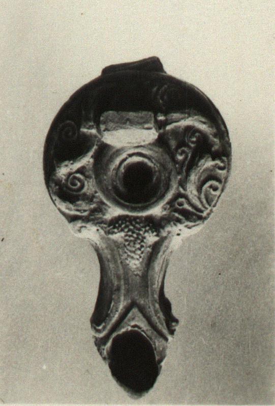 | Description: | The vertical band handle broken away. On the rim, acanthus rinceaux, with a bunch of grapes at the start of the nozzle. Thin black glaze. Pinkish-buff clay. Type XVIII (post Sullan) of Corinth collection. | |