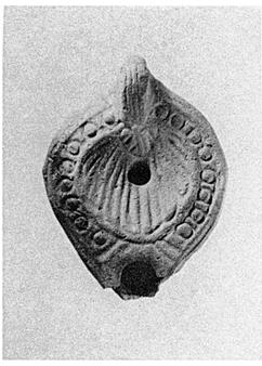On the bottom a palm branch, enclosed within two almond-shaped grooves, with impressed circles at handle and nozzle.