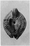 | Description: | On rim, herringbone. Discus, plain, heart-shaped, with two volutes next to handle. Handle solid, double grooved. Nozzle without circles. On reverse, almond-shaped groove, signed. Unglazed. Buff clay; top blackened by fire. Type XXVIII of Corinth collection. ADDENDA For nozzle cf. Corinth IV, ii, p. 105, fig. 49, no. 5. Cf. Corinth IV, ii, nos. 781-784. <graphic> | |