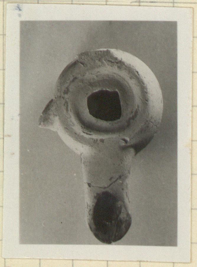 | Description: | The handle missing. Flat bottom, deep round body with long nozzle and vertical strap handle. Shallow convex rim. Unpierced lug on one side. Wheelmade. Buff clay. Red glaze mostly peeled off. Type 35A of Agora collection, type XII (late straight variety) of Corinth collection. Agora IV, nos. 467-471, pp. 109-110, pls. 17, 43. Corinth IV, ii, pp. 52-53, nos. 183-189, pl. IV. | |