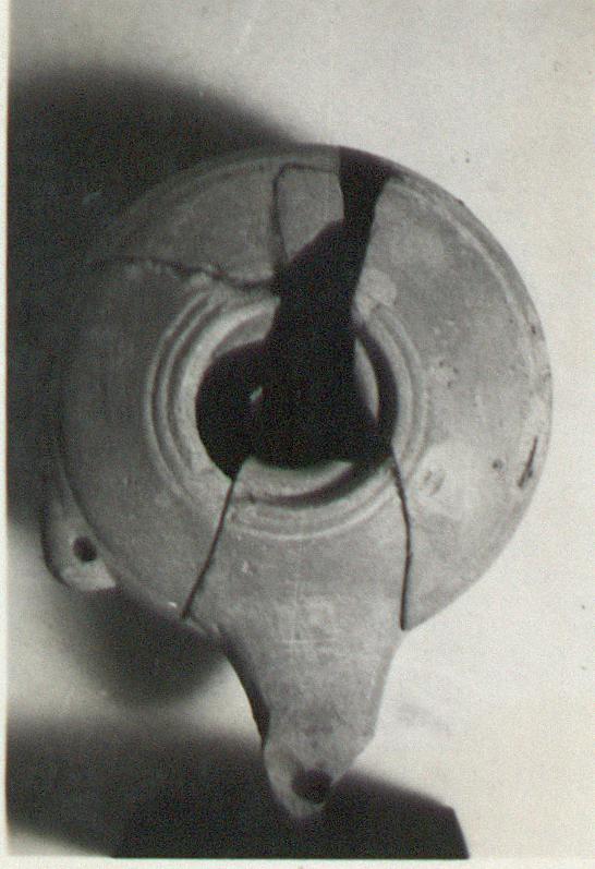 | Description: | Fragments of body and nozzle missing. Pierced knob at left. Red glaze on interior which has run through the nozzle and streaked exterior at right. Type 25C' of Agora collection, type VIII of Corinth collection. Cf. Agora IV, nos. 341-349, pp. 77-78, pls. 12, 39. Corinth IV, ii, p. 47, nos. 137-140, pl. III. | |