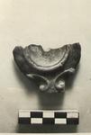 | Description: | Top toward nozzle only preserved. The end of nozzle broken away. Plain discus with small central filling hole, set off from plain rim by a ridge. Nozzle connected with body by volutes which do not encroach upon circle of discus. Hard red clay. Dull red to black glaze. A bright orange color within. Type XX of Corinth collection. Cf. Corinth IV, ii, pp. 70-73, nos. 372-382, pl. VII. | |
