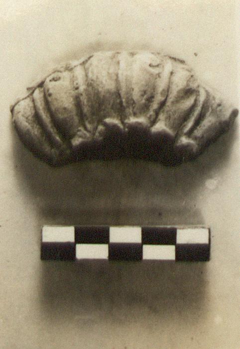 | Description: | Part of discus and rim only preserved. Rosette or shell on discus. On rim alternately broad and narrow raised tongues. Light brown clay, with some mica. Thin worn grayish glaze. Type XXI of Corinth collection. Cf. Corinth IV, ii, pp. 73-76, nos. 383-417, pls. VII-IX. | |