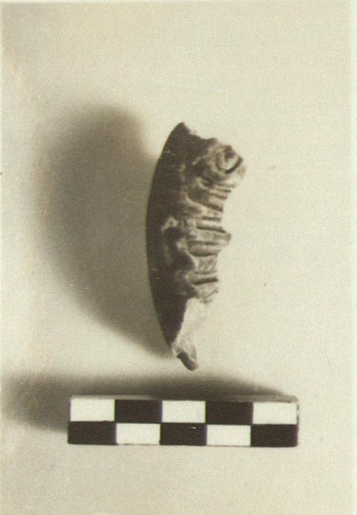 | Description: | Lamp fragment with ribbed rim, ribs made with a blunt implement, and a volute. Brownish pink clay, metallic black glaze. Type XVIII (?) of Corinth collection, type 45C of Agora collection. Cf. Agora IV, nos. 584-588, pp. 146-147, pl. 47. | |