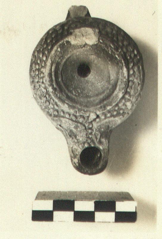 | Description: | Handle missing, otherwise complete. Stamp on bottom: "A". Dull purplish wash. Type XX of Corinth collection. | |