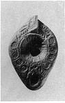 On the bottom, inside double grooves, diagonals and impressed circles.