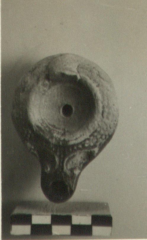 | Description: | Complete except for handle. On bottom: "A". Brownish-purple glaze. Type XX of Corinth collection. | |