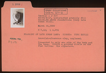 | Context: | Undisturbed gravelly fill below. 0.70m. above foundations. Very late Roman fill. | |