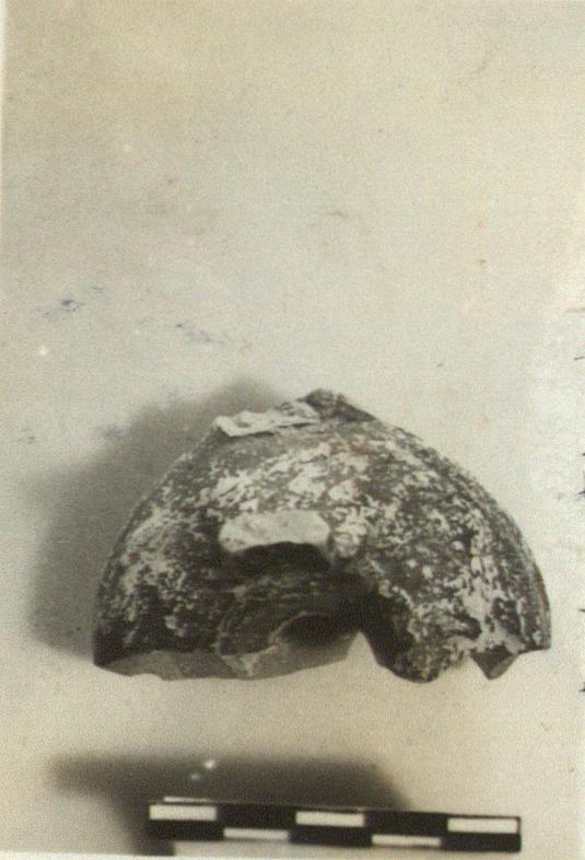 | Description: | Back part with most of handle preserved. Leaf pattern in relief on upper body. Underneath, in raised letters, part of a signature: "Δ" (for "ΔΙΟΝΥCΙΟΥ" ?). Glaze red to black, worn. Pinkish-buff clay. Type XVIII of Corinth collection, type 54C of Agora collection. | |