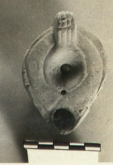 | Description: | The unpierced handle has three grooves. The disk and rim are unornamented; a circle however separates the disk from the rim, and another circle marks the outer edge of the rim. The bottom is outlined by two concentric circles. Unglazed. Orange-buff clay. Type XXVIII of Corinth collection. | |
