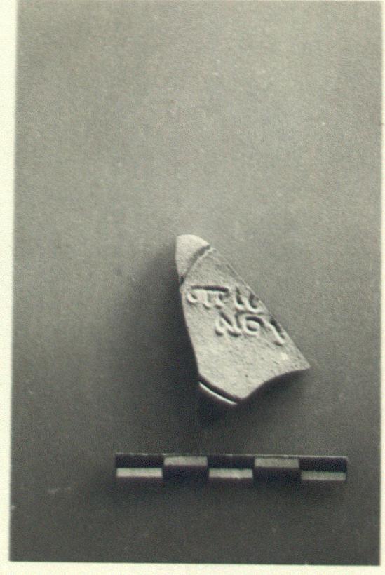 Description:   Fragment of base remains, with part of a signature.