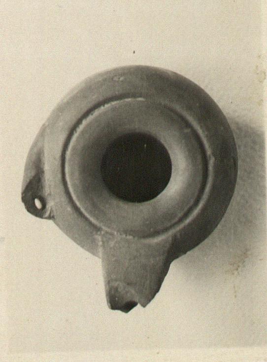 | Description: | End of nozzle broken. Rounded rim, sloping to center. Body nearly ball-shaped; on the left side a pierced knob. Deep nozzle, rather narrow; flat on top. High, somewhat flaring base. Type VIIB of Corinth collection, type 25B of Agora collection. ADDENDA For profile cf. Corinth IV, ii, p. 32, fig. 14, profile 34. | |