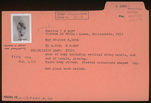 | Description: | Most of body including vertical strap handle, and end of nozzle missing. Upper body ribbed. Pierced cornucopia-shaped lug. Red glaze much peeled. Type XVIII of Corinth collection, type 48Β of Agora collection. ADDENDA Restored in plaster since photographing. | |