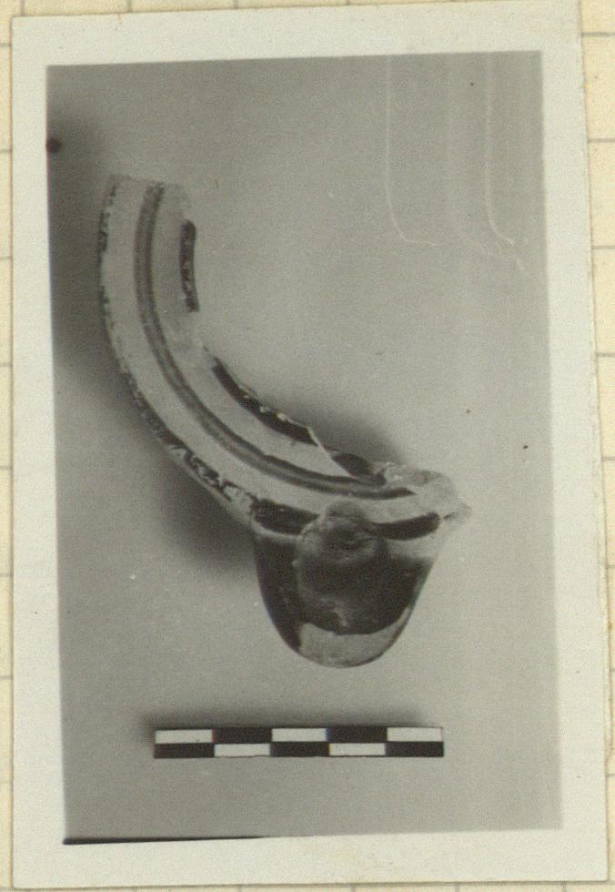 | Description: | Nozzle and about one-quarter of the rim preserved. The rim is flat, very slightly concave. Three bands on rim. Attic clay; the nozzle and interior have rather metalic black glaze. Type 19 Variants of Agora collection, type III of Corinth collection. Cf. Agora IV, nos. 142-148, pp. 42-43, pls. 5, 33. Corinth IV, ii, pp. 38-39, nos. 54-58, pl. I. | |