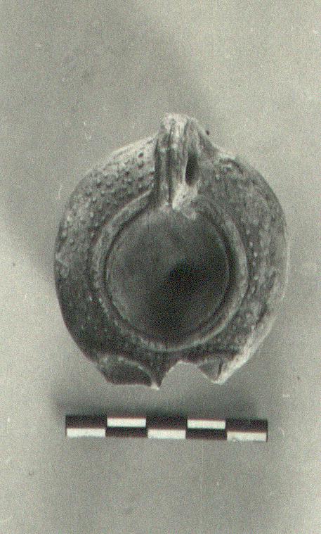 | Description: | Disc, rim and single grooved handle preserved. Purple-red glaze. Buff clay. Type XX of Corinth collection. | |