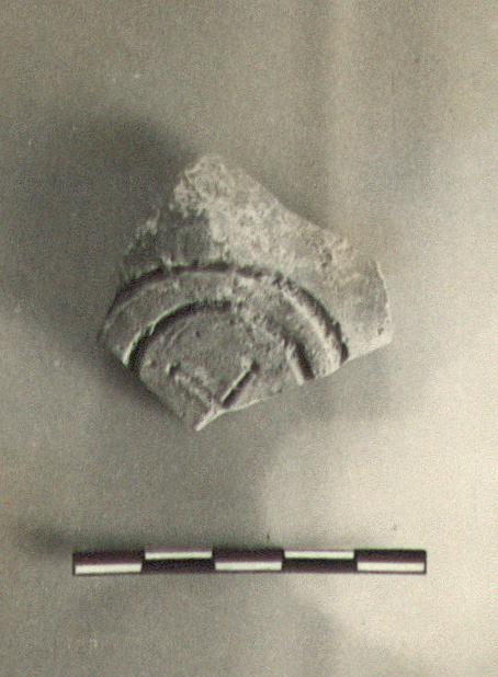 | Description: | Fragment from bottom with circular area enclosed by double grooved line, within which: "X". Red wash on the body, run over on to the bottom. Light red clay. Type XXVIII of Corinth collection. | |