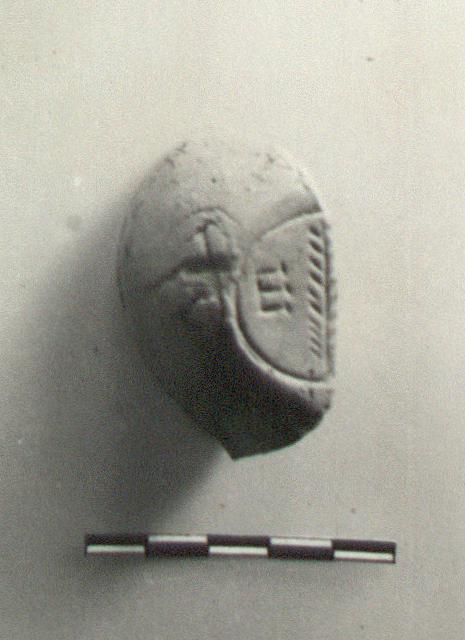 | Description: | Bottom only preserved with palm branch in circular base ring. Letters on one side preserved. Unglazed. Red clay. Type XXVIII of Corinth collection. <graphic> | |