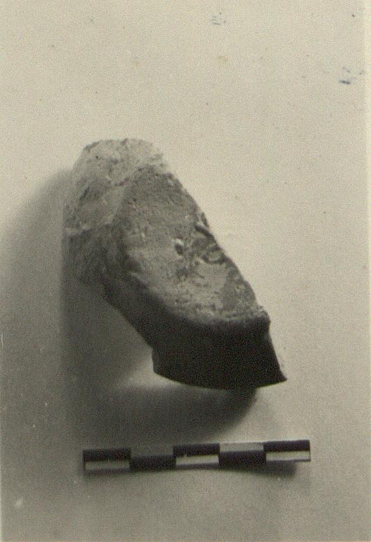 | Description: | Part of side and bottom of lamp. Letters in relief on the bottom. Red glaze much peeled. Type XVIII of Corinth collection, Signed Bases type of Agora collection. <graphic> | |