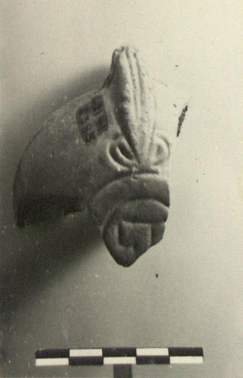 | Description: | About one-third preserved, including handle. Vine pattern on rim, rosette on discus; solid handle, triply and doubly grooved. Stamped semi-circles at base of handle. Double concentric grooves on reverse, enclosing signature. Thin red wash. Light red clay. Type XXVIII of Corinth collection. | |
