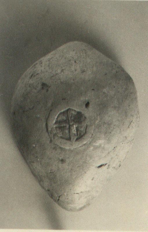 | Description: | Upper half missing. Mold made. On the reverse, as a base, is a small raised circle within which is a raised cross. Light brownish-buff clay, thick; smoothed by hand. ADDENDA A piece resembling in shape the lower half of a lamp of type XXVIII of Corinth collection. | |