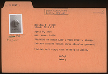 | Description: | Letters incised within three circular grooves. Thin fabric; no glaze. Pinkish-buff clay. Type XXVII of Corinth collection. <graphic> | |