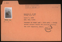 | Description: | Raised letters inside two circular grooves. Two line signature, faint. Type XXVII of Corinth collection. <graphic> | |