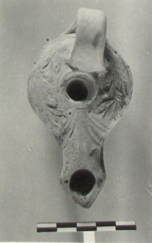 | Description: | Triangular nozzle, small slightly concave base without foot ring. High vertical strap handle. A wreath in relief around the top. Brownish-black glaze, mostly peeled. Brown clay. Type 54A of Agora collection. | |