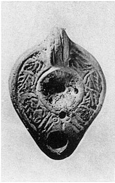 | Description: | On rim, vine pattern. Discus, plain, with central filling hole, four air holes. Handle, solid, double grooved. On base, almond-shaped grooves, palm branch and stamped circles. Unglazed. Red clay. Type XXVIII of Corinth collection. ADDENDA For nozzle, cf. Corinth IV, ii, p. 105, fig. 49, p. 2. | |