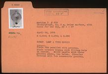 | Description: | Intact. Plain rim panelled with grooves. Plain concave discus with filling hole in center. Solid handle with three grooves above, two below. Circular reverse with two concentric grooves. Type XXVIII of Corinth collection. | |