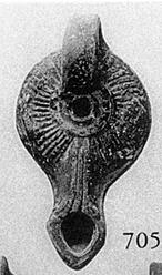 On left side of discus a long narrow lug; on right a leaf (?) in high relief.