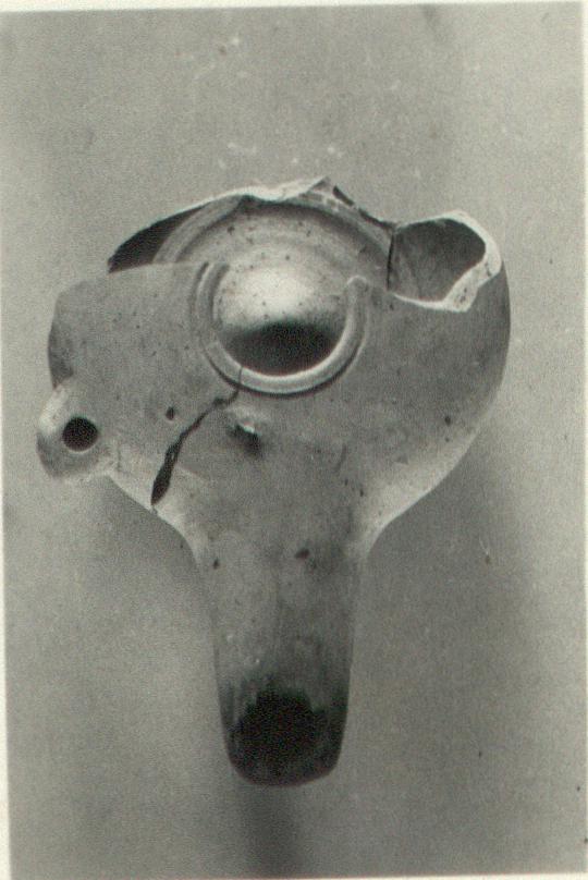 | Description: | Back part missing. Semi-pierced knob. Floor rises to a high cone inside. Blister ware; wheel made. Unglazed. Blistery pale red clay. Type IX of Corinth collection, type 28B of Agora collection. | |