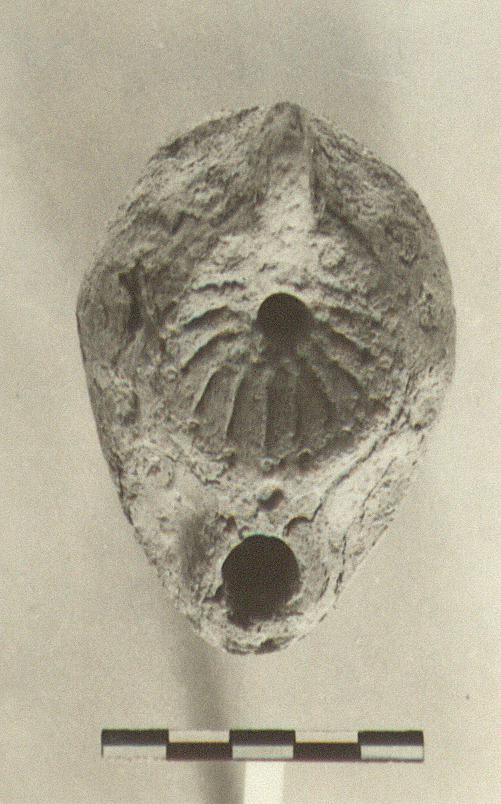| Description: | Ribs on discus, stamped circles on sloping upper body, and bottom. Unglazed; the surface very ctumbly. Coarse red clay. Type XXVIII of Corinth collection. | |