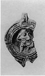 | Description: | Fragment of top. Scrolls on rim, with plain panels. On discus, a figure in a short chiton, right, but facing front, bow in left hand. At right a dog's tail (?) Artemis (?). Reddish clay and wash, stained. Type XXVIII of Corinth collection. | |