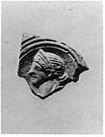 | Description: | Nozzle broken off. Scrolls in panelled rim. On discus, protome of woman left, wearing diadem. Underneath, leaf within single groove. Partly pierced handle, three grooves above, two below. Unglazed. Brownish-buff clay. Type XXVII (?) of Corinth collection. | |